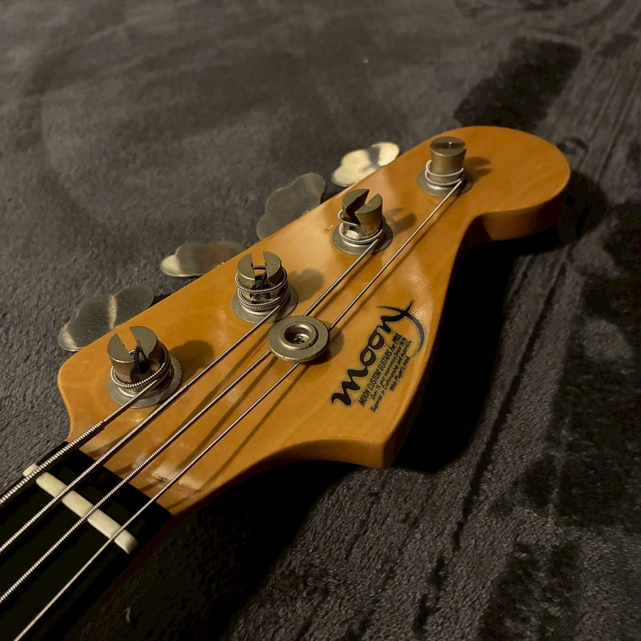 Moonの評価を支える最大のポイントであるネック精度は本個体でも健在しており、ストレートで安定感のあるネックにより、スムーズなポジション移動や長時間の演奏でも疲れにくい握り心地となっています。ライブの現場でも安心して使える、実用性重視のセッティングが可能な個体です。