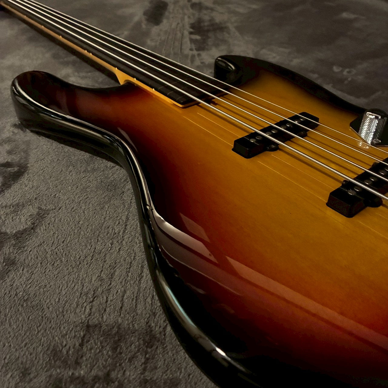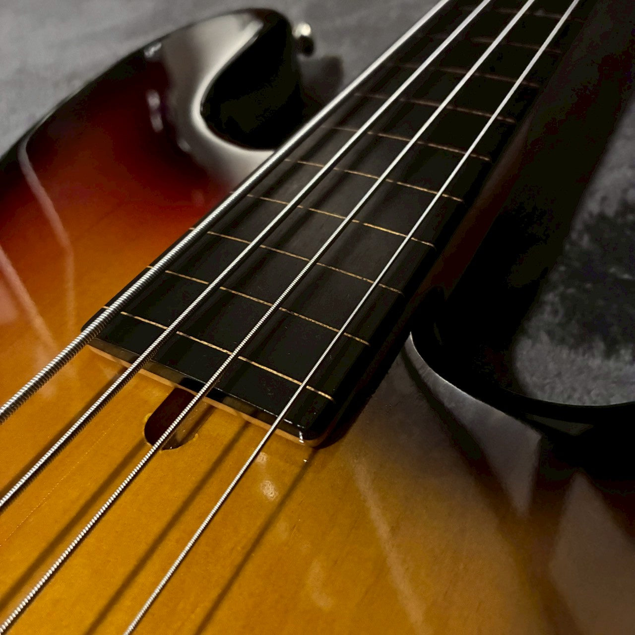 本個体は、落ち着いた色味のサンバーストフィニッシュを採用した1本で、ステージ・レコーディング問わず使いやすいルックスと実用性を兼ね備えています。木目を活かした自然なグラデーションが出ており、派手すぎず、それでいて存在感のある仕上がりで、ジャンルやシーンを選ばない万能なルックスです。さらに本個体は、フレットレスモデルとなっており、ボディのルックスも相まってさらに渋さを醸し出しています。