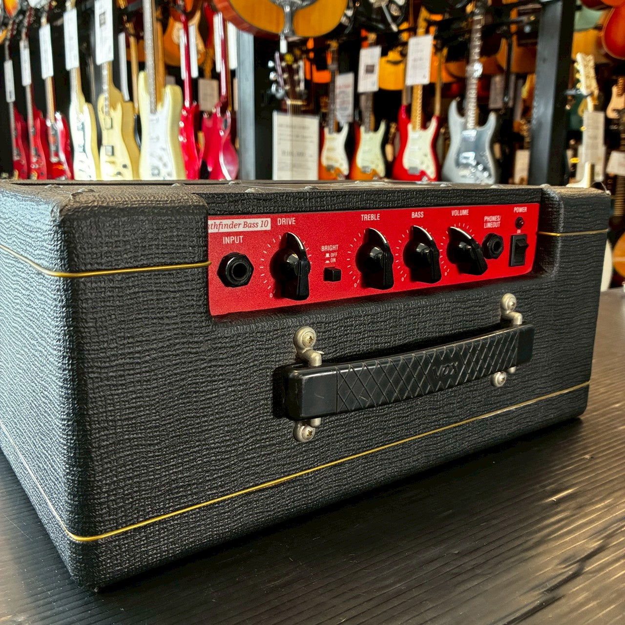 外観はシンプルなVOXデザインで、ステージや部屋置きにも違和感のないルックス。比較的軽量・コンパクトなので、持ち運びやすく、気軽にベース練習環境を整えたい方におすすめです。