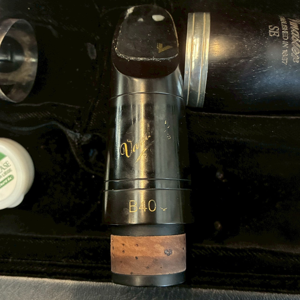 ハードケース マウスピース(Vandoren B40) Selmerリガチャー キャップ 調整履歴記載のカード 取扱説明書 コルクグリス