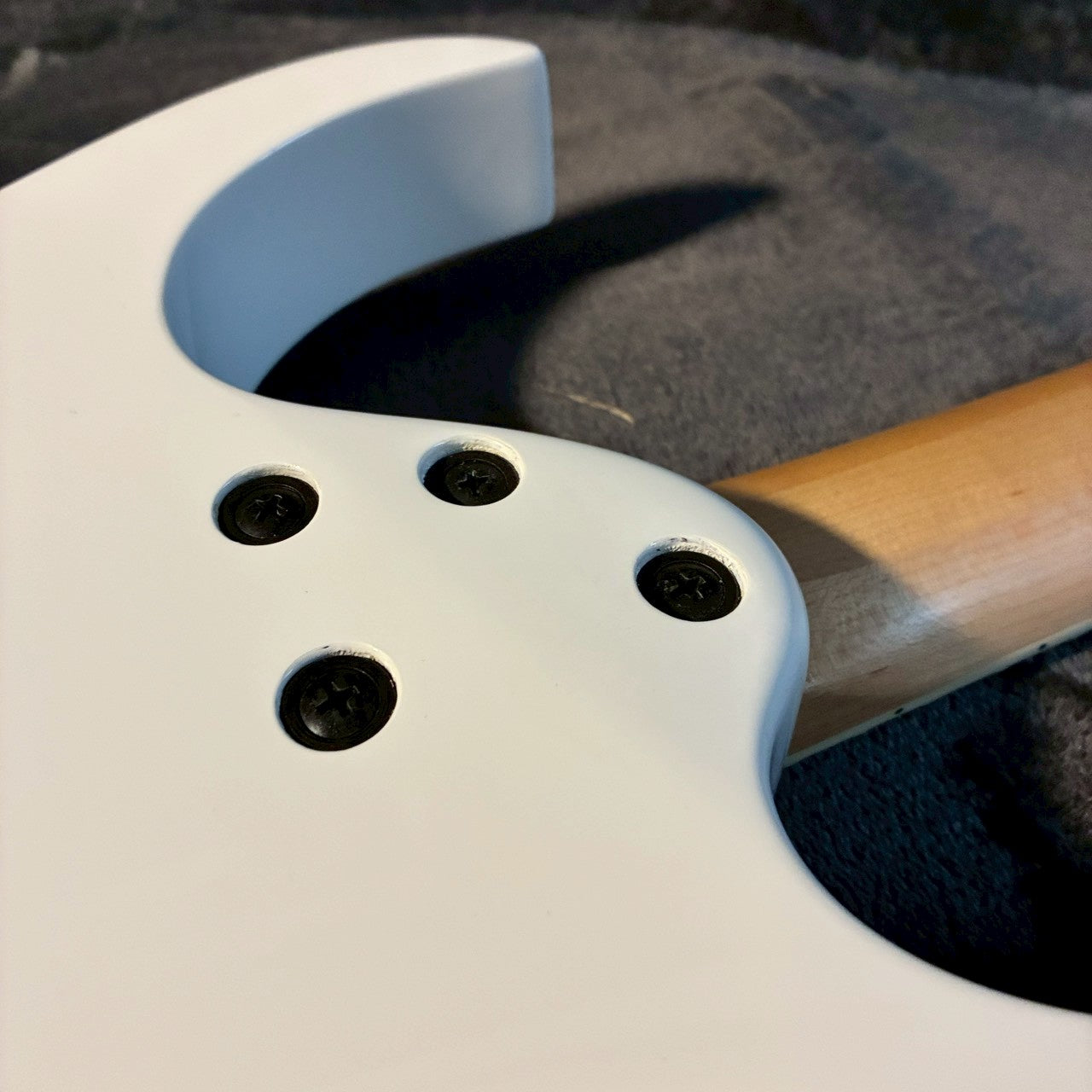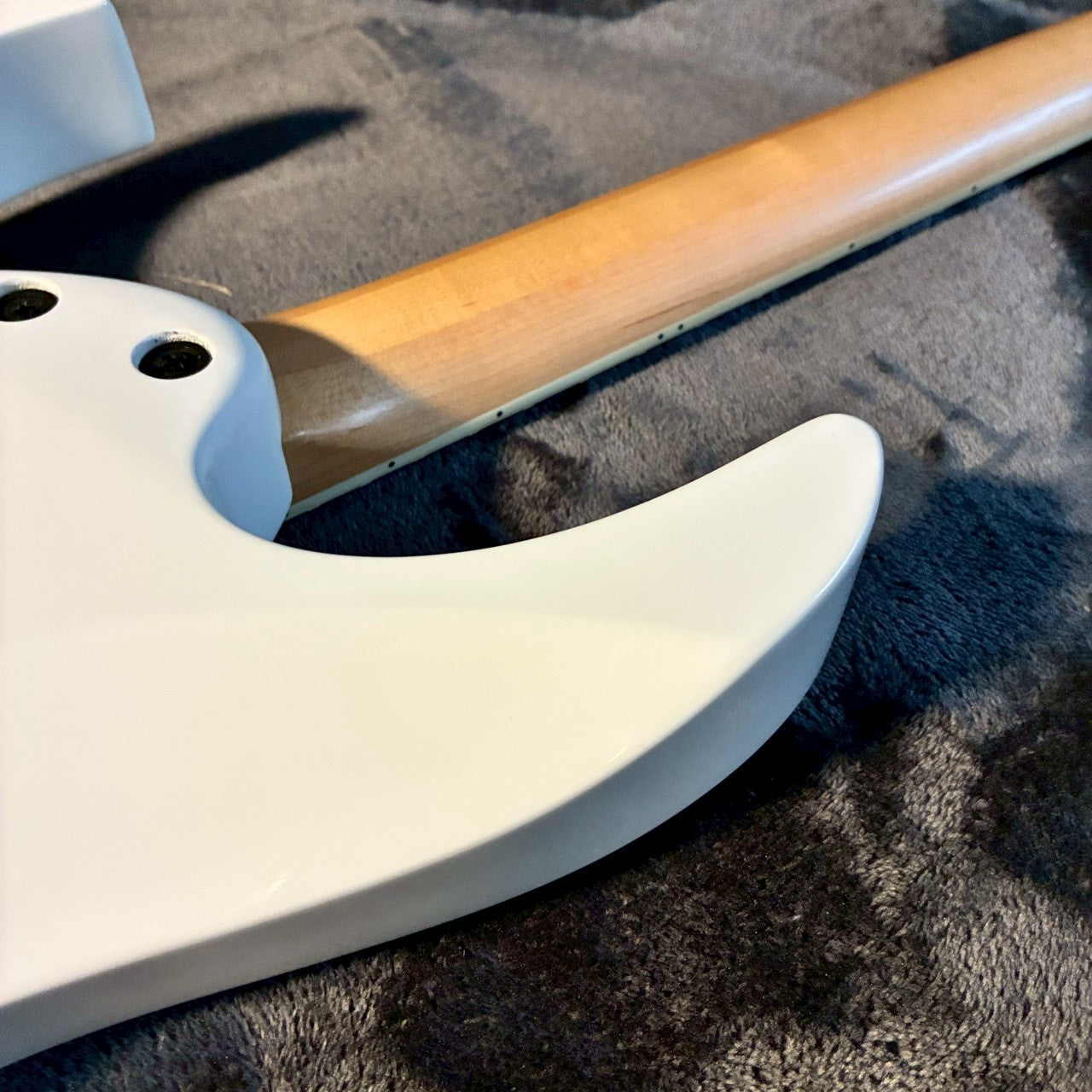ハイフレット側が大きくえぐられており、最終フレット付近まで無理なくアクセスできます。この“えぐれ方”は、見た目以上に演奏性に直結するポイントです。